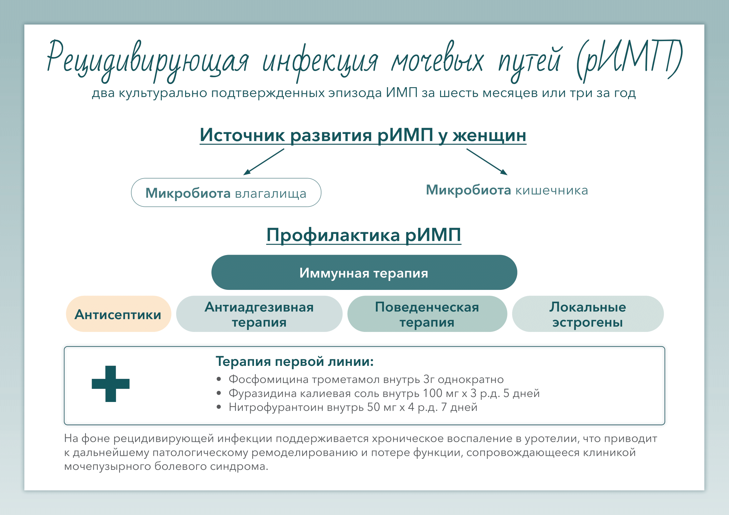 Рецидивирующая инфекция мочевых путей у женщин (рИМП) - сложная и неоднозначная проблема. Изучайте и сохраняйте информацию по лечению и профилактике рИМП.
